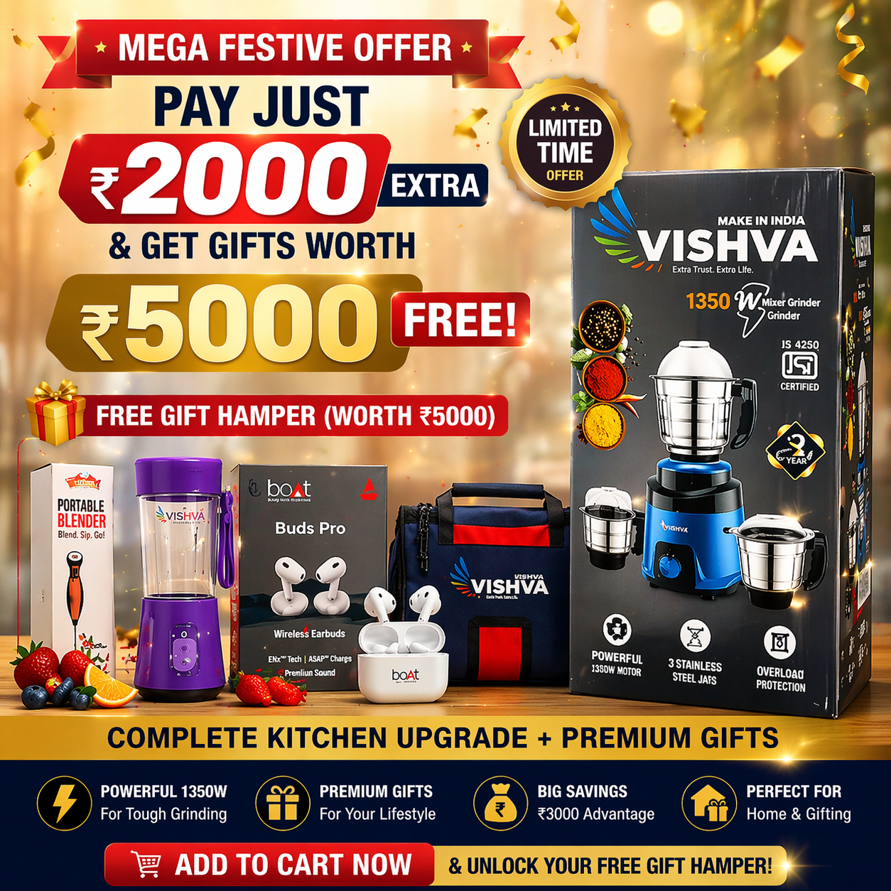 | Specific Uses For Product | Grinding wheat, pulses, rice, spices, grains, and other dry ingredients to make fresh flour, powders, and masalas. |