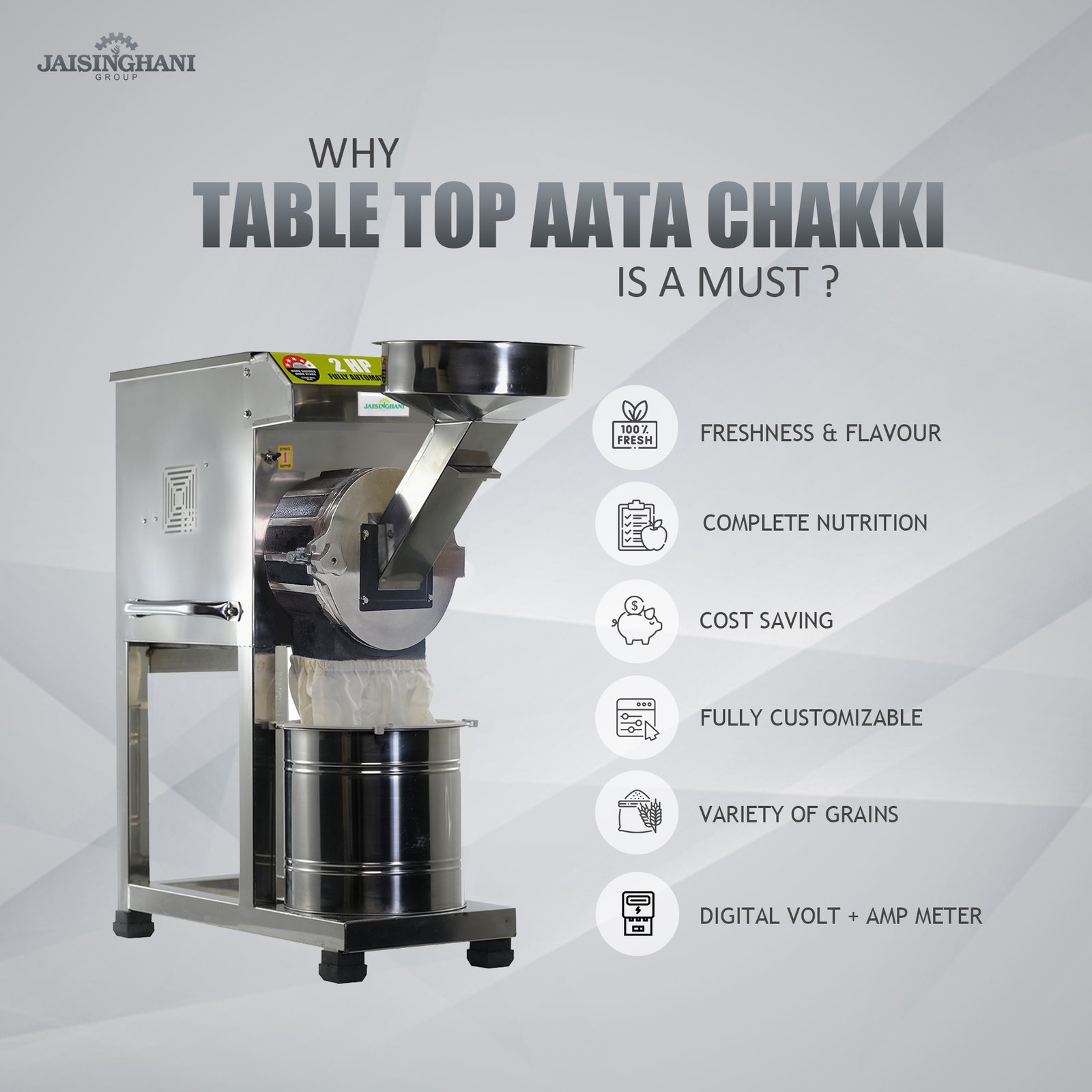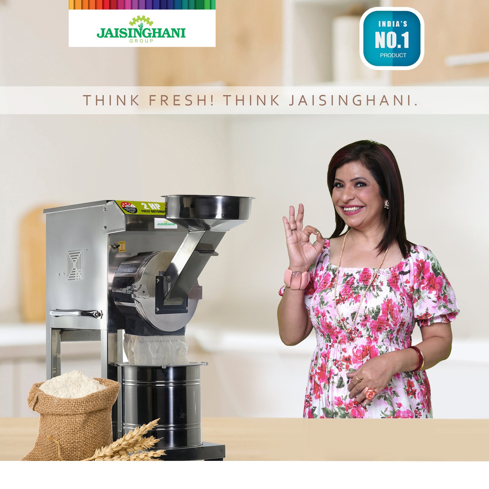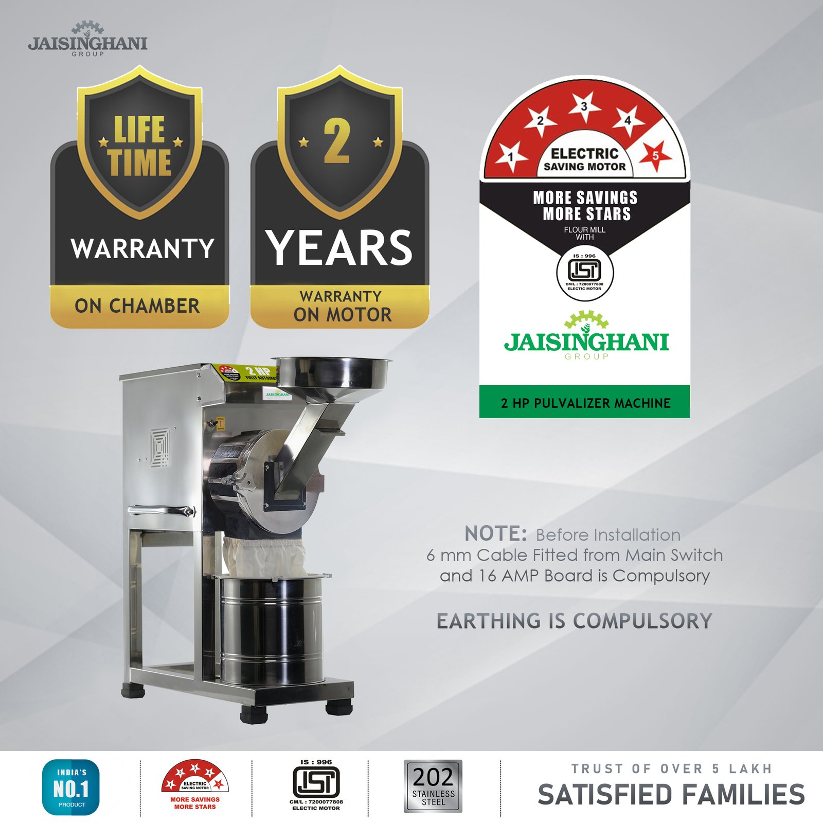 Jaisinghani Group 2 HP Full Automatic Stainless Steel Pulverizer Atta Chakki | 20 - 22 Kg/Hour Grinding Capacity | Next-Gen Commercial Pulverizer Flour Mill | Fresh Flour Atta Chakki Machine | Energy Saving