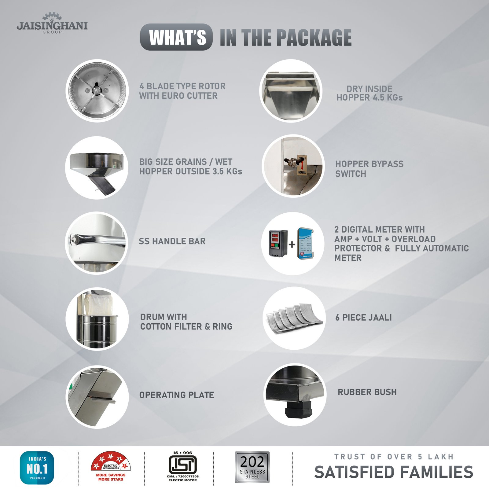 | Specific Uses For Product | Grinding wheat, pulses, rice, spices, grains, and other dry ingredients to make fresh flour, powders, and masalas. |