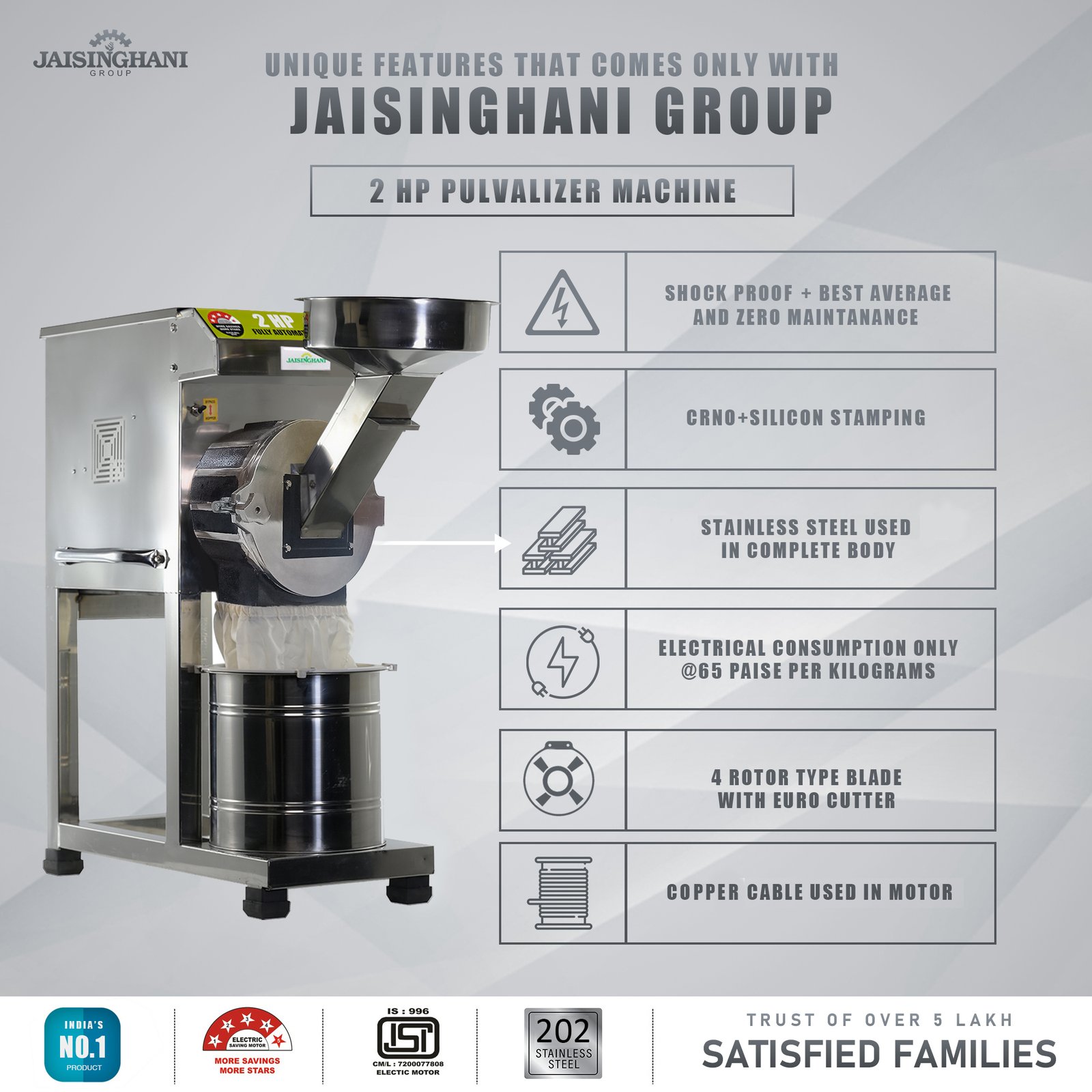 Jaisinghani group is the best pulverizer machine manufacturers in India with 35+ Years of trust from our beloved Indian customers. Choose the right machine for maximum output.