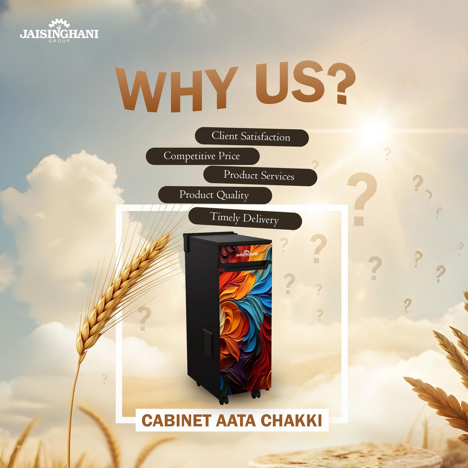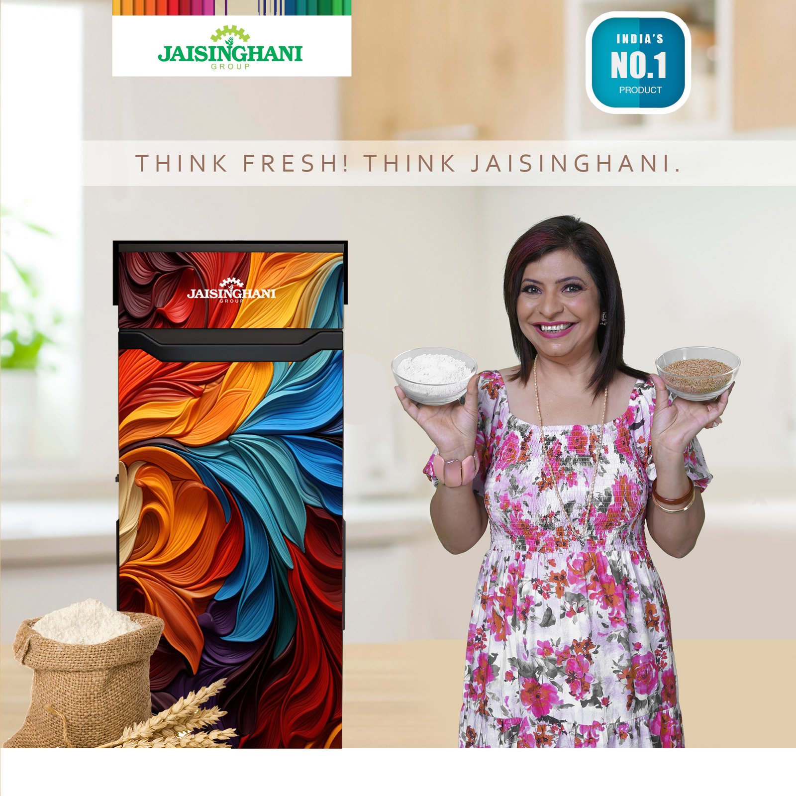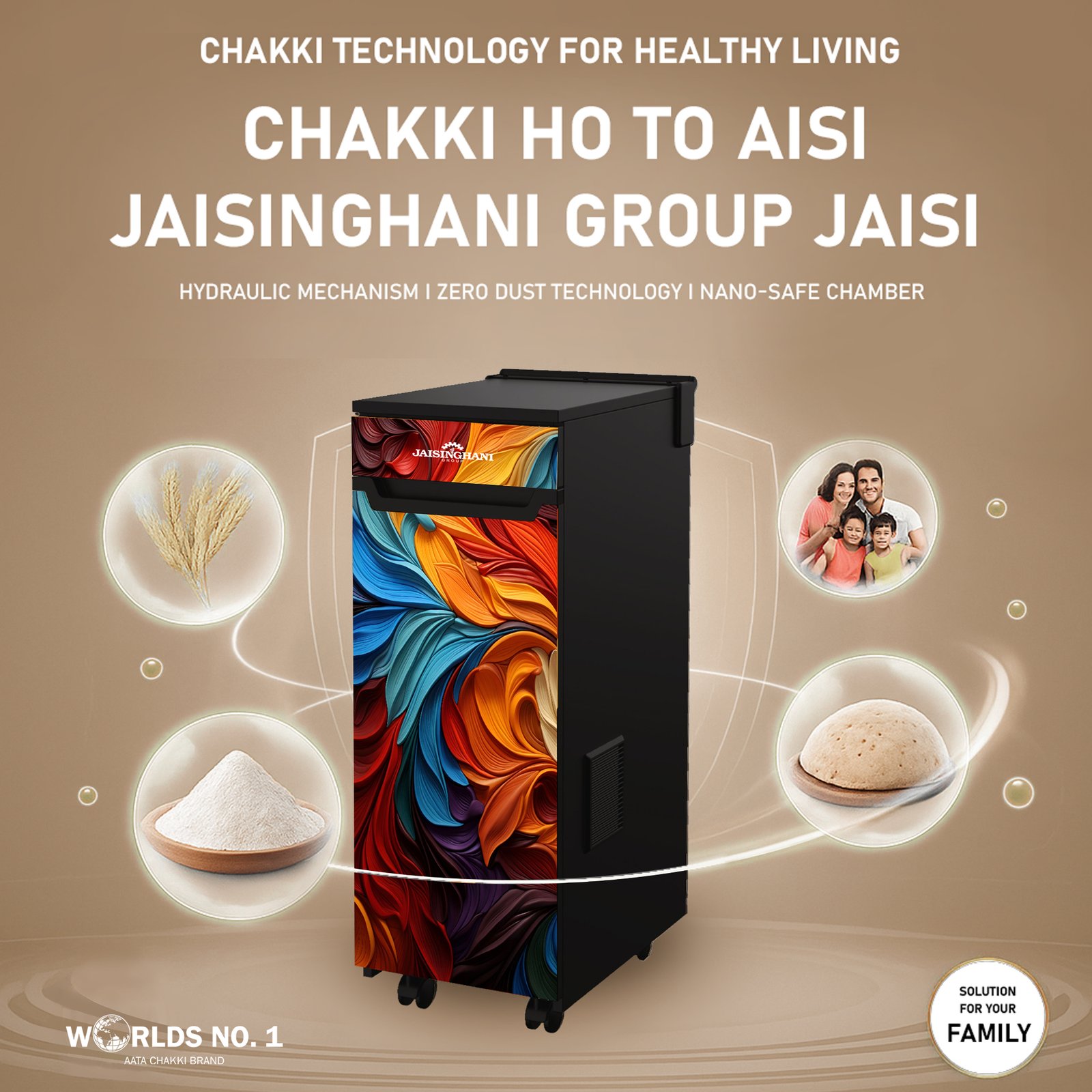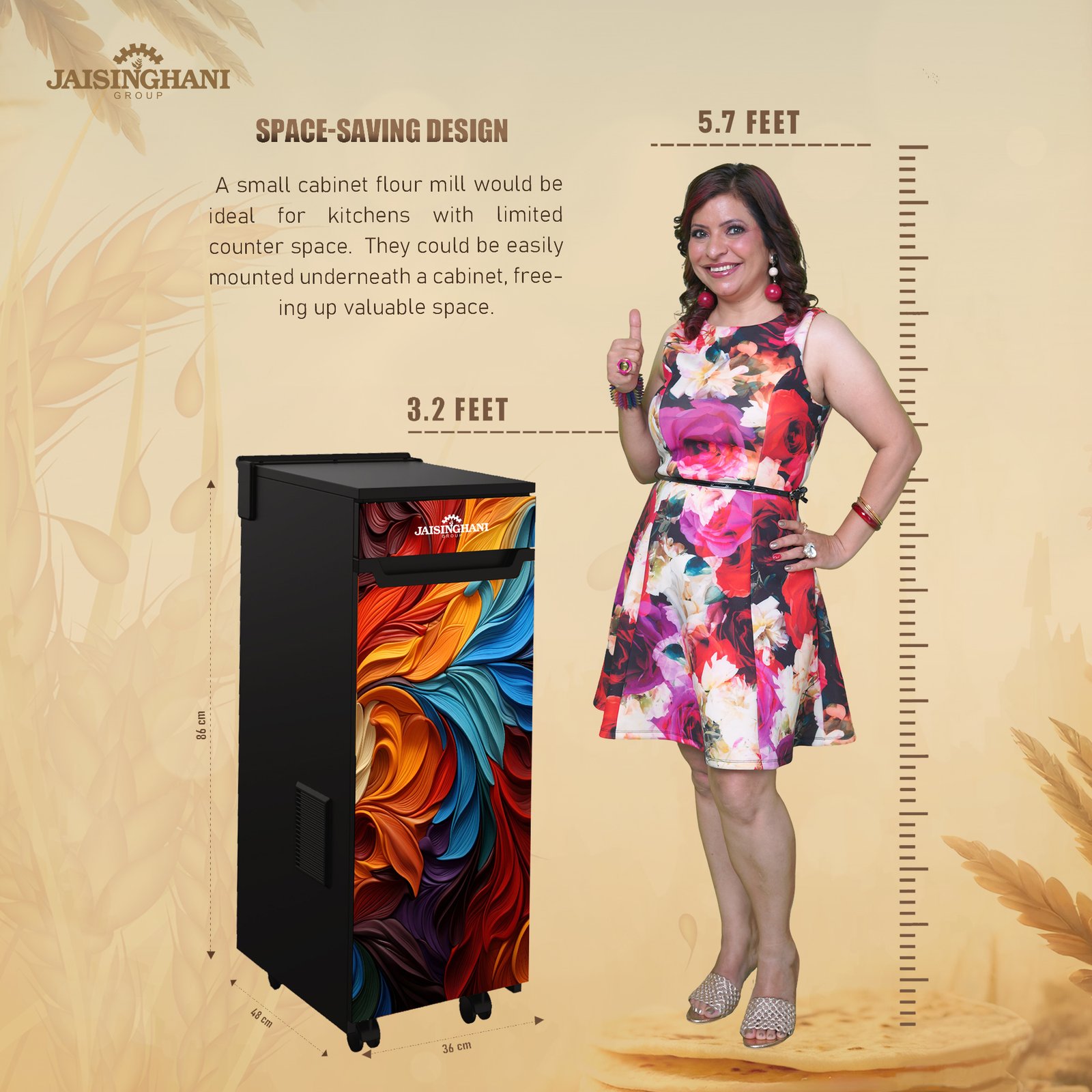 Jaisinghani Group 1HP Cabinet Atta Maker | High-Speed Domestic Flour Mill | 8–10 Kg/Hr Capacity | Energy Efficient 0.75 Unit/Hr | Ideal for Fresh Wheat & Rice Flour